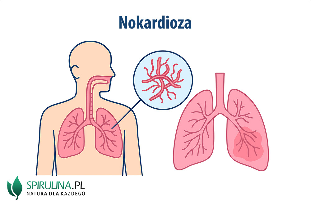 Nokardioza to choroba zakaźna wywoływana przez bakterie z rodzaju Nocardia. Są to Gram-dodatnie, tlenowe drobnoustroje o charakterystycznym, nitkowatym kształcie, naturalnie występujące w środowisku (zwłaszcza w glebie, kurzu i wodzie). Mogą one zaatakować różne tkanki, najczęściej jednak gromadzą się w układzie oddechowym. Ze względu na bakteryjny charakter choroby podstawą leczenia pozostaje odpowiednio dobrana antybiotykoterapia. Wczesne rozpoznanie oraz szybkie wdrożenie terapii mają kluczowe znaczenie dla rokowania, zwłaszcza u osób z obniżoną odpornością.