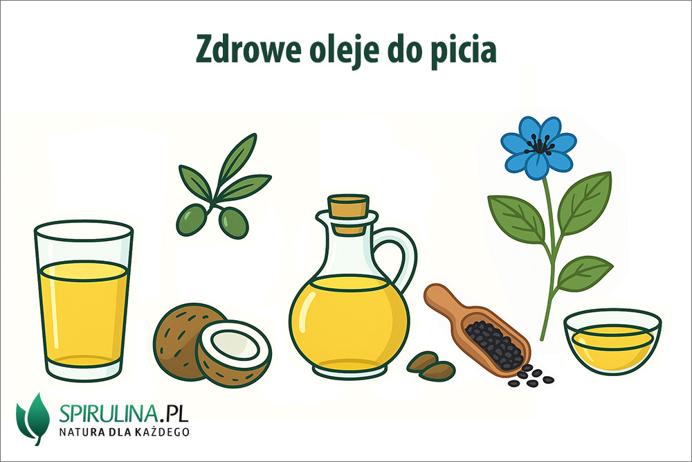 Zdrowe oleje do picia to takie, które zawierają w sobie bardzo duże ilości niezbędnych nienasyconych kwasów tłuszczowych z rodziny Omega, zwłaszcza Omega 3 i Omega 6 (szczególnie korzystnie, gdy w danym produkcie występuje się przewaga Omega 3 nad kwasami tłuszczowymi Omega 6), jak również witamin (zwłaszcza tych rozpuszczalnych w tłuszczach). Aby tak się stało nasiona z których tłoczy się olej, powinny mieć naturalne pochodzenie, a sam olej musi być tłoczony na zimno, nierafinowany. Do grona najzdrowszych olejów do picia, które idealnie nadają się do codziennej suplementacji i wzbogacania diety nimi, należą między innymi: